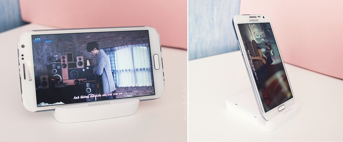 Es ist eine Akkuladestation für mein Galaxy Note 2 [welches ich nun schon seit fast zwei Jahren habe und abgöttisch liebe!]! Anfangs empfand ich es selbst als übertrieben, dass man für sein Handy überhaupt ein zweites Akku braucht, aber in Seoul ist es leider doch so, dass man sehr viel Zeit am Handy verbringt: In der U-Bahn, im Unterricht [natürlich nur für wichtige Notizen und Bilder von der Präsentation *hust*], wenn man alleine zu Mittag isst oder beim Lernen im Café sich selbst ablenken möchte oder was nachschauen möchte [bei dem ganzen kostenlosen WLan, das angeboten wird ist es wirklich sehr praktisch!] – Leider auch während man mit anderen Menschen Zeit verbringt.