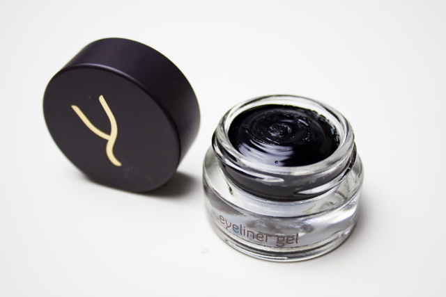 Der schwarze Gel Eyeliner kommt in einem kleinen Glastiegel mit einem schwarzen Schraubverschlussdeckel, auf dem ein goldenes Ypsilon eingelassen wurde. Ganz ähnlich dem Facial Scrub.