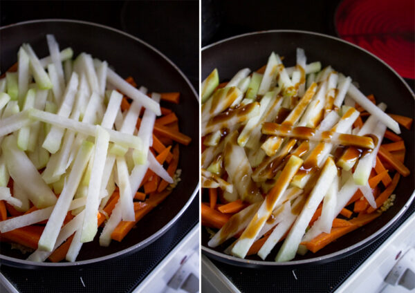 Gebratene Möhren und Kohlrabistreifen