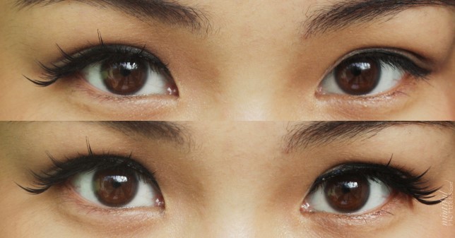 Ich hatte bei beiden Augen so meine Schwierigkeiten die Wimpern perfekt anzukleben, so dass das Tragegefühl bei beiden Augen nicht so angenehm war. Da das Band auch noch sehr dick ist und die Wimpern an sich recht schwer, spürt man jeden Fehler am Auge sofort.