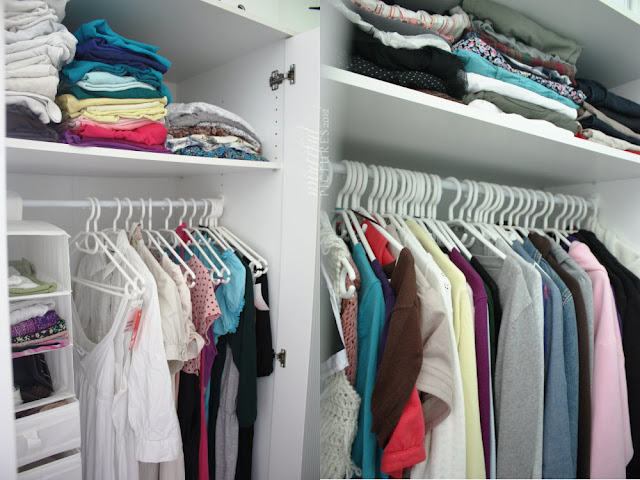 Und nun einen kleinen Einblick in meine Kleiderschränke. Ich finde es sieht nicht nach viel aus, aber wenn man bedenkt dass ich einen gelben Sack weggeschmissen habe, zwei Umzugkartons für Kleiderkreisel vorbereitet habe und die Wintersachen weggeräumt sind,… o.O